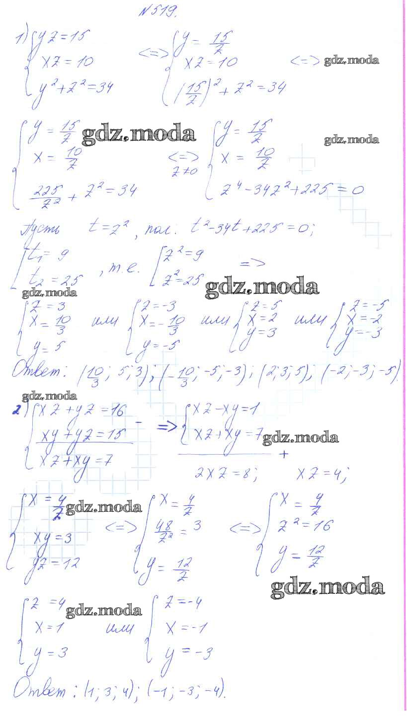 ГДЗ решение к заданию № 519 Алгебра 8 класс Алимов Ш.А. Просвещение 2014 бесплатно на гдз.мода!