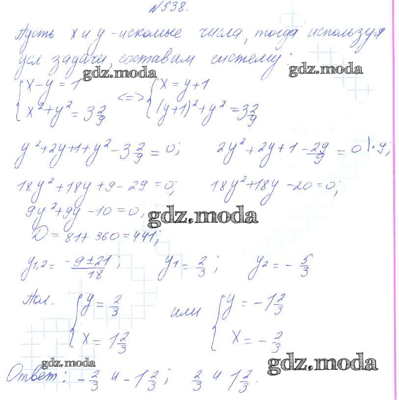 ГДЗ решение к заданию № 538 Алгебра 8 класс Алимов Ш.А. Просвещение 2014 бесплатно на гдз.мода!