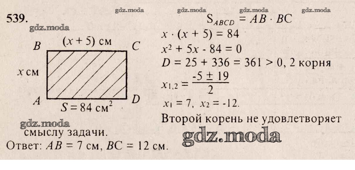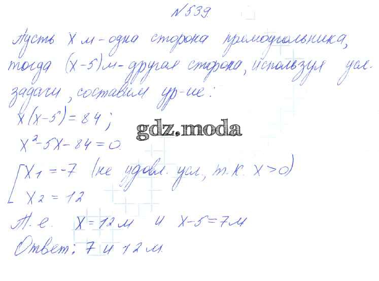 ГДЗ решение к заданию № 539 Алгебра 8 класс Алимов Ш.А. Просвещение 2014 бесплатно на гдз.мода!