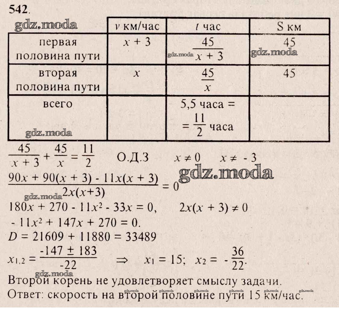 ГДЗ решение к заданию № 542 Алгебра 8 класс Алимов Ш.А. Просвещение 2014 бесплатно на гдз.мода!