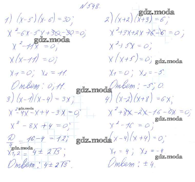 ГДЗ решение к заданию № 548 Алгебра 8 класс Алимов Ш.А. Просвещение 2014 бесплатно на гдз.мода!