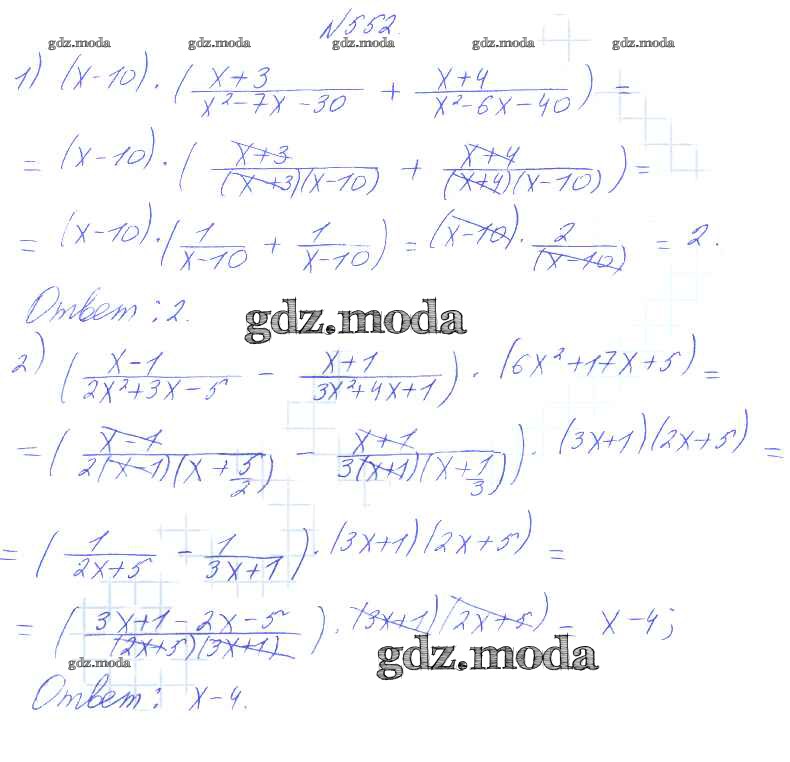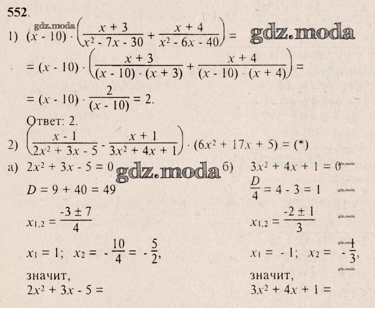 ГДЗ решение к заданию № 552 Алгебра 8 класс Алимов Ш.А. Просвещение 2014 бесплатно на гдз.мода!