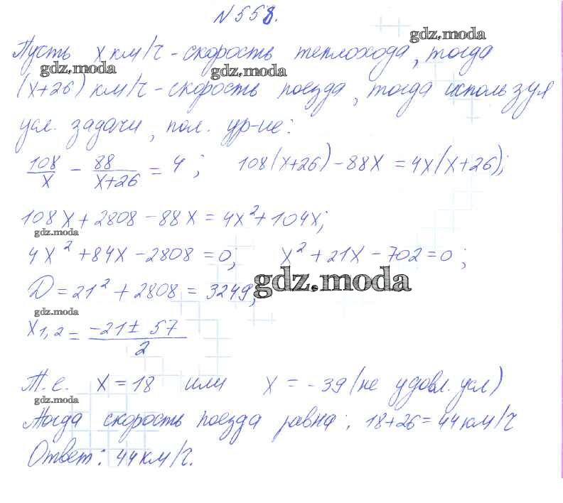 ГДЗ решение к заданию № 558 Алгебра 8 класс Алимов Ш.А. Просвещение 2014 бесплатно на гдз.мода!