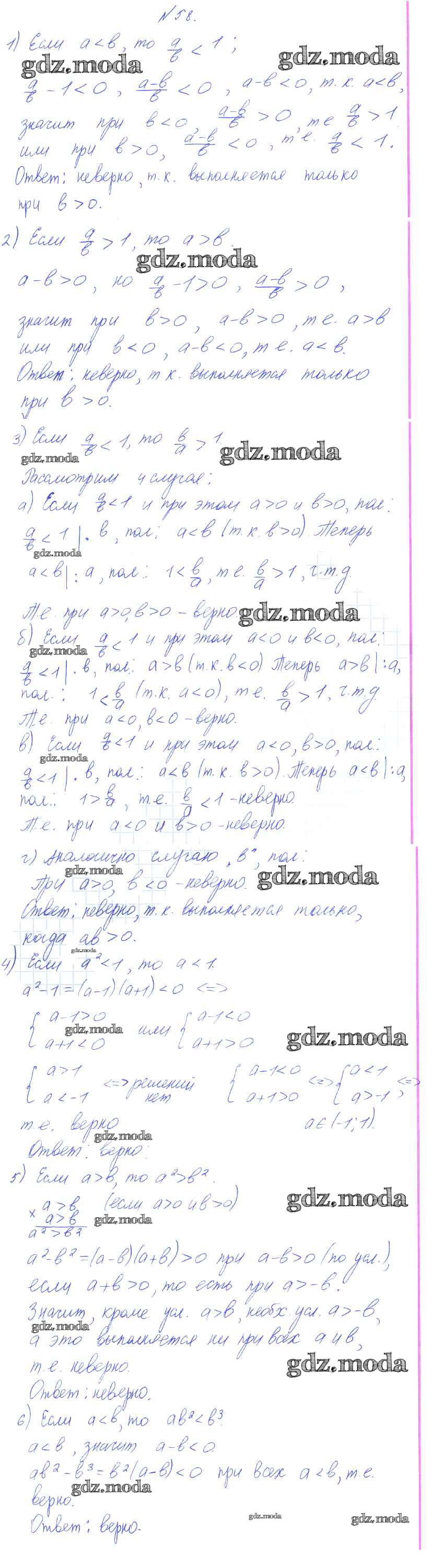 ГДЗ решение к заданию № 58 Алгебра 8 класс Алимов Ш.А. Просвещение 2014 бесплатно на гдз.мода!