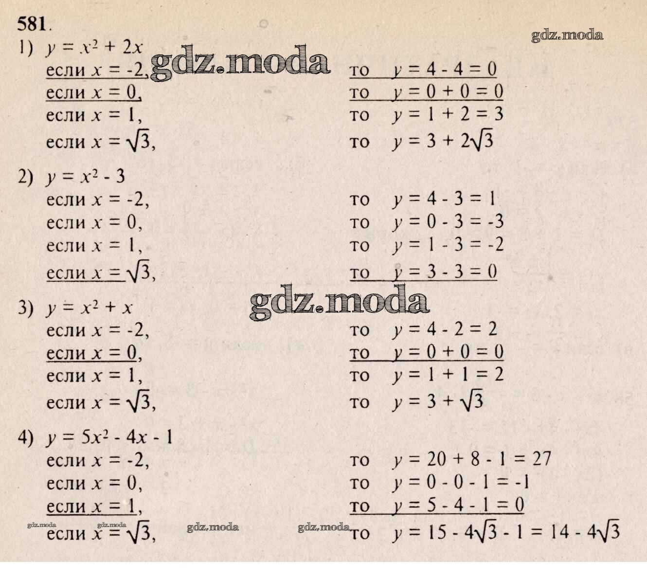ОТВЕТ на задание № 581 Учебник по Алгебре 8 класс Алимов