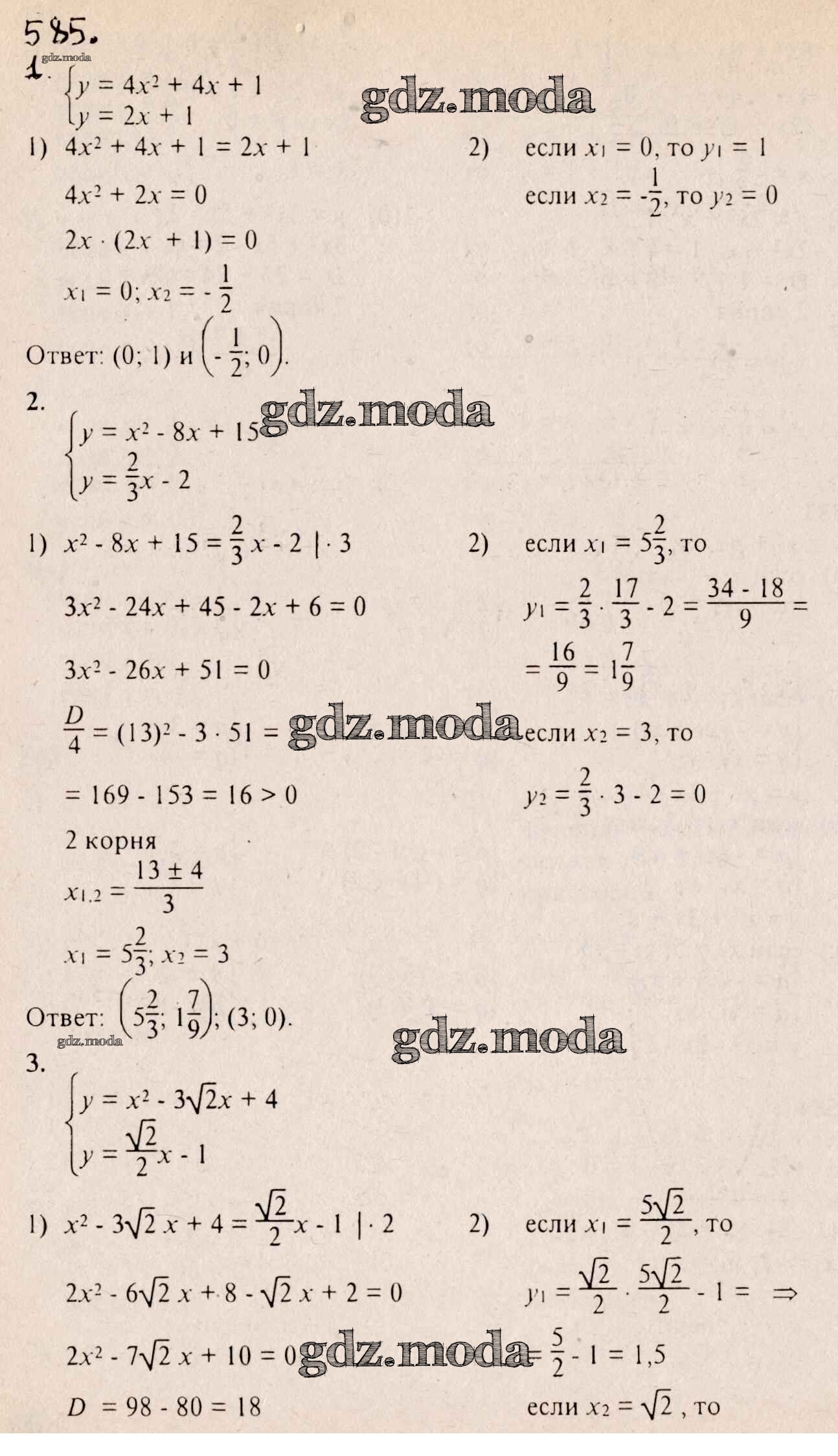 ГДЗ решение к заданию № 585 Алгебра 8 класс Алимов Ш.А. Просвещение 2014 бесплатно на гдз.мода!