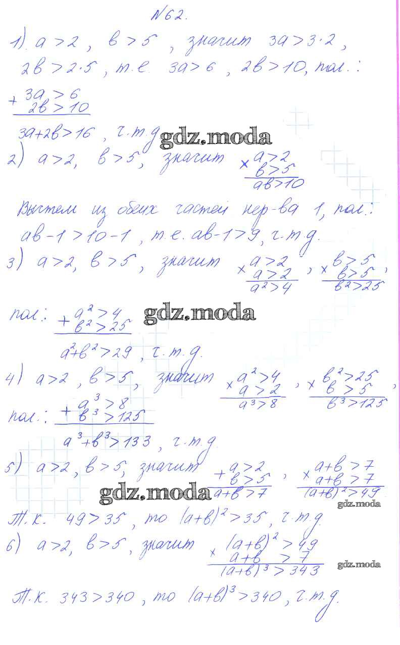 ГДЗ решение к заданию № 62 Алгебра 8 класс Алимов Ш.А. Просвещение 2014 бесплатно на гдз.мода!