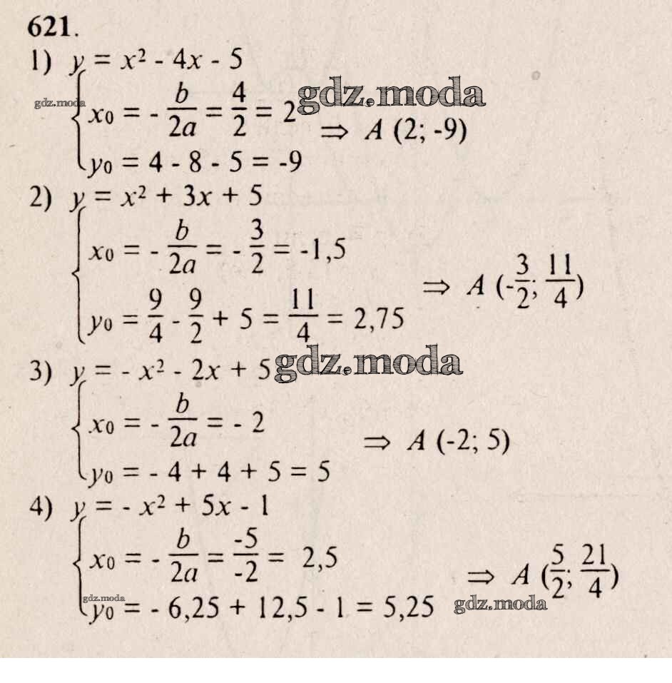 ГДЗ решение к заданию № 621 Алгебра 8 класс Алимов Ш.А. Просвещение 2014 бесплатно на гдз.мода!