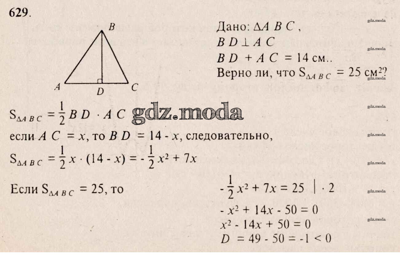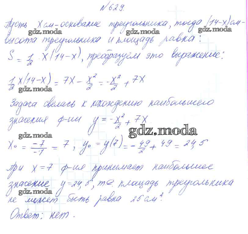 ГДЗ решение к заданию № 629 Алгебра 8 класс Алимов Ш.А. Просвещение 2014 бесплатно на гдз.мода!
