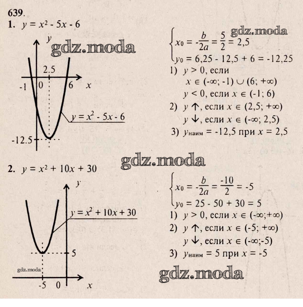 ГДЗ решение к заданию № 639 Алгебра 8 класс Алимов Ш.А. Просвещение 2014 бесплатно на гдз.мода!