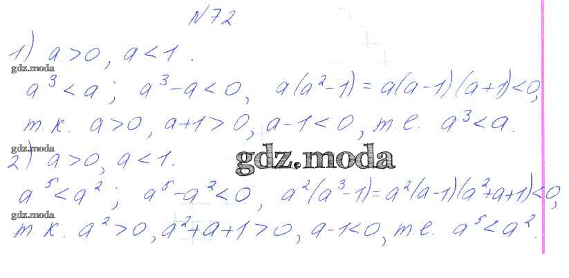 ГДЗ решение к заданию № 72 Алгебра 8 класс Алимов Ш.А. Просвещение 2014 бесплатно на гдз.мода!
