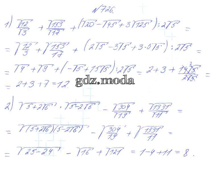 ГДЗ решение к заданию № 726 Алгебра 8 класс Алимов Ш.А. Просвещение 2014 бесплатно на гдз.мода!