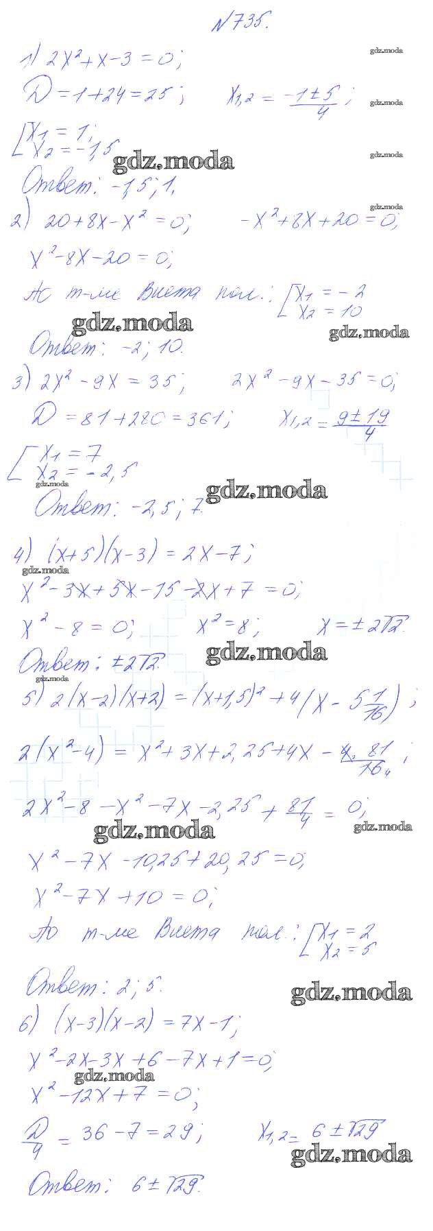 ГДЗ решение к заданию № 735 Алгебра 8 класс Алимов Ш.А. Просвещение 2014 бесплатно на гдз.мода!