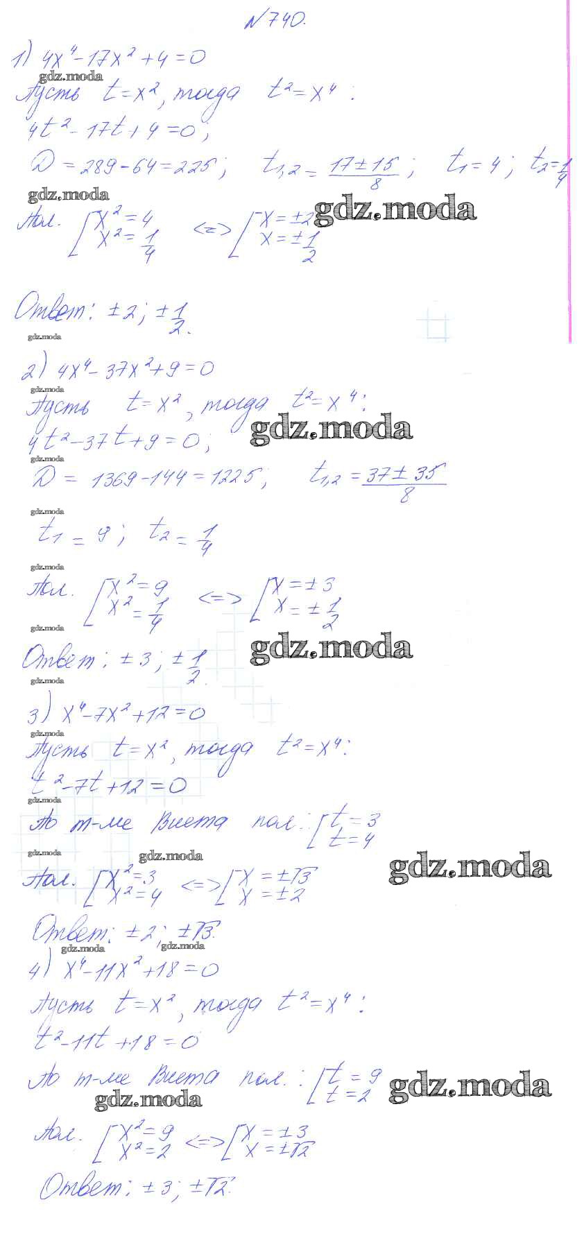ГДЗ решение к заданию № 740 Алгебра 8 класс Алимов Ш.А. Просвещение 2014 бесплатно на гдз.мода!