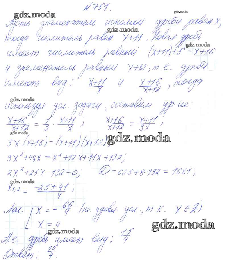 ГДЗ решение к заданию № 751 Алгебра 8 класс Алимов Ш.А. Просвещение 2014 бесплатно на гдз.мода!