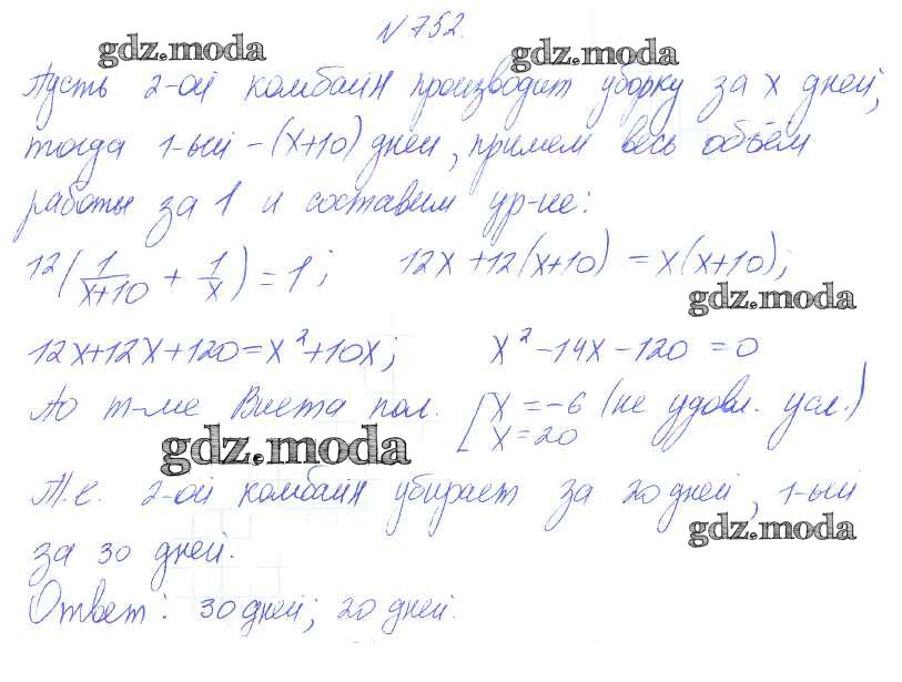 ГДЗ решение к заданию № 752 Алгебра 8 класс Алимов Ш.А. Просвещение 2014 бесплатно на гдз.мода!