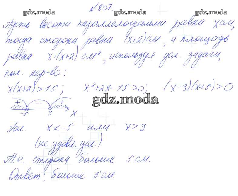 ГДЗ решение к заданию № 807 Алгебра 8 класс Алимов Ш.А. Просвещение 2014 бесплатно на гдз.мода!
