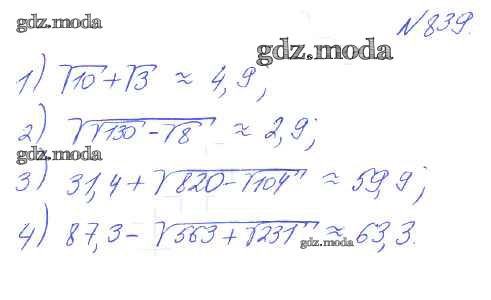 ГДЗ решение к заданию № 839 Алгебра 8 класс Алимов Ш.А. Просвещение 2014 бесплатно на гдз.мода!