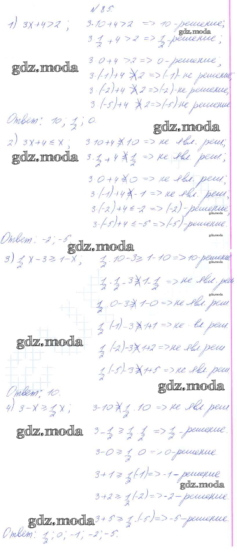 ГДЗ решение к заданию № 85 Алгебра 8 класс Алимов Ш.А. Просвещение 2014 бесплатно на гдз.мода!