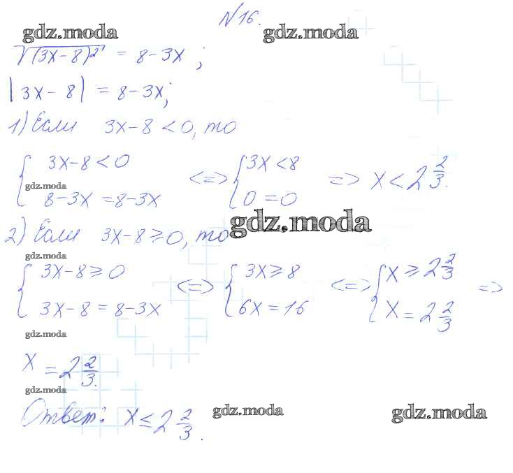 ОТВЕТ на задание № 16 Учебник по Алгебре 8 класс Алимов