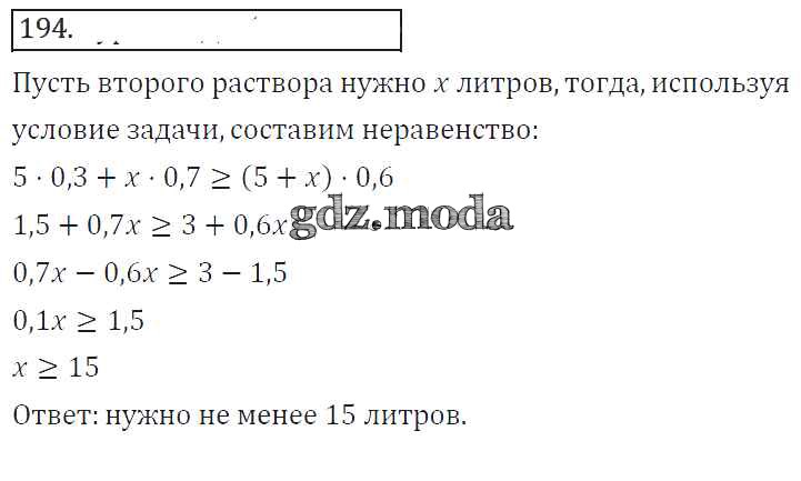 ГДЗ решение к заданию № 194 Алгебра 8 класс Колягин Ю.М. Просвещение 2013 ФГОС бесплатно на гдз.мода!