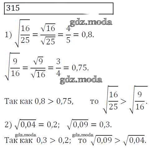 ГДЗ решение к заданию № 315 Алгебра 8 класс Колягин Ю.М. Просвещение 2013 ФГОС бесплатно на гдз.мода!