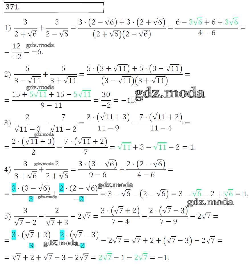 ГДЗ решение к заданию № 371 Алгебра 8 класс Колягин Ю.М. Просвещение 2013 ФГОС бесплатно на гдз.мода!