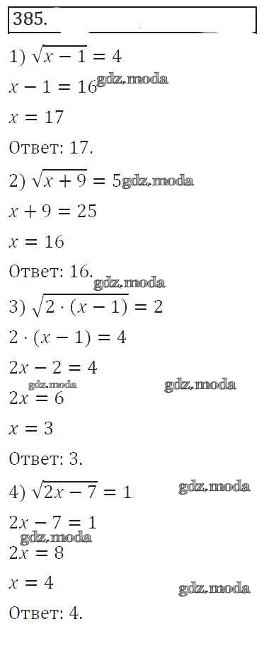 ГДЗ решение к заданию № 385 Алгебра 8 класс Колягин Ю.М. Просвещение 2013 ФГОС бесплатно на гдз.мода!