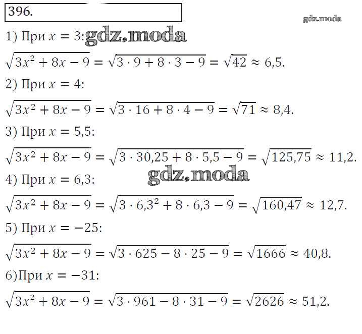ГДЗ решение к заданию № 396 Алгебра 8 класс Колягин Ю.М. Просвещение 2013 ФГОС бесплатно на гдз.мода!