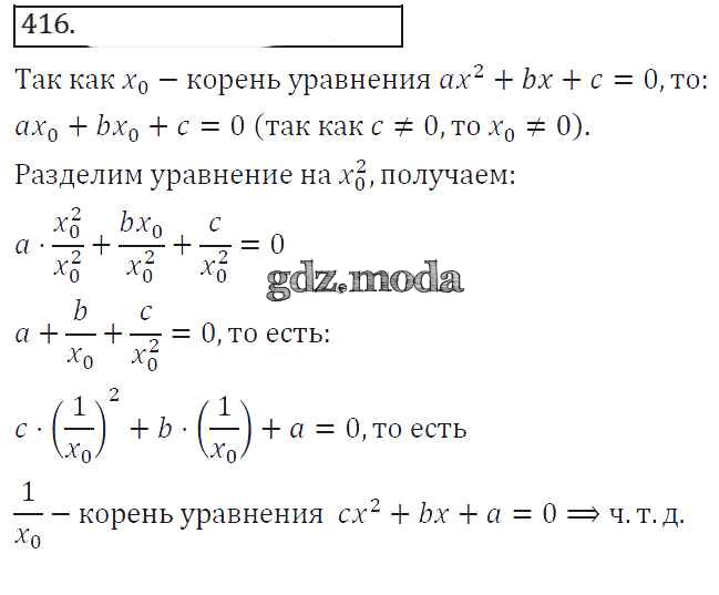 ОТВЕТ на задание № 416 Учебник по Алгебре 8 класс Колягин УМК