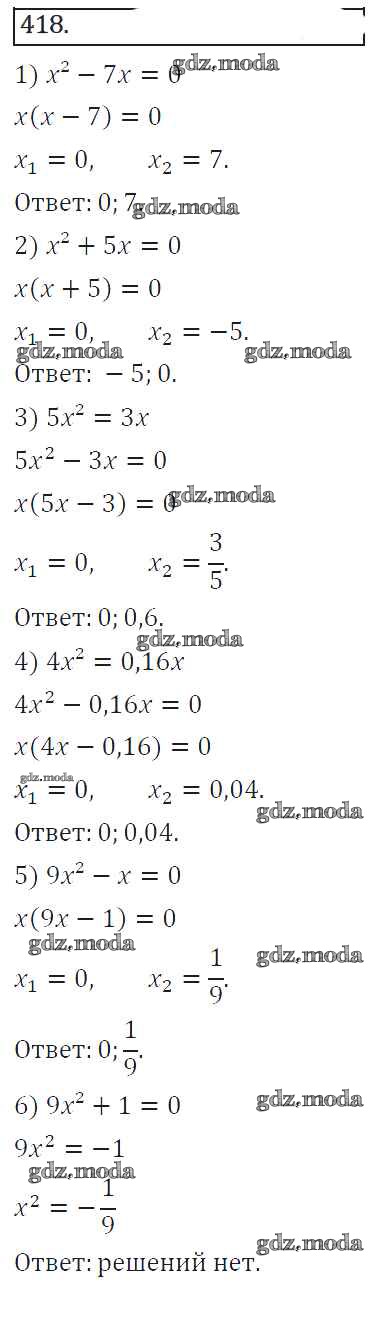 ГДЗ решение к заданию № 418 Алгебра 8 класс Колягин Ю.М. Просвещение 2013 ФГОС бесплатно на гдз.мода!