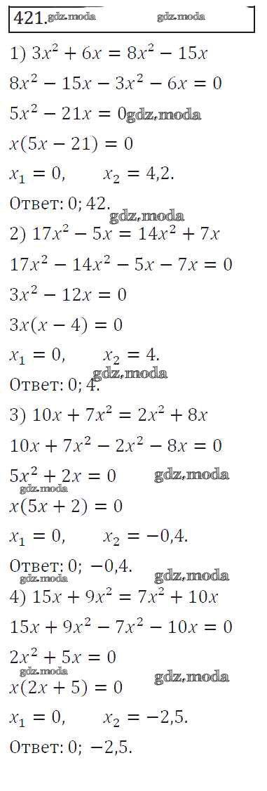 ГДЗ решение к заданию № 421 Алгебра 8 класс Колягин Ю.М. Просвещение 2013 ФГОС бесплатно на гдз.мода!