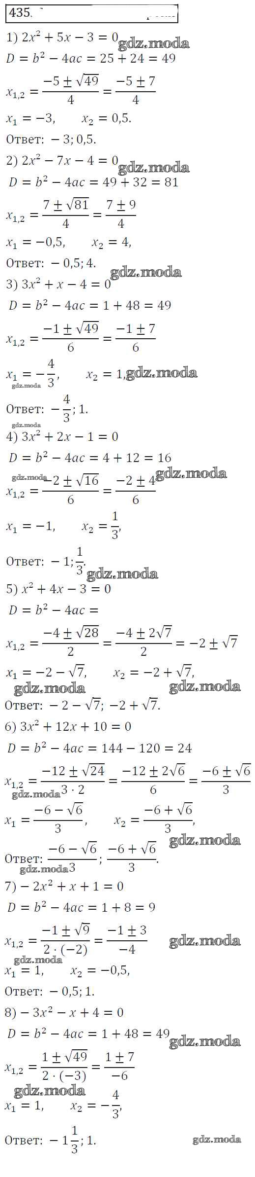 ГДЗ решение к заданию № 435 Алгебра 8 класс Колягин Ю.М. Просвещение 2013 ФГОС бесплатно на гдз.мода!