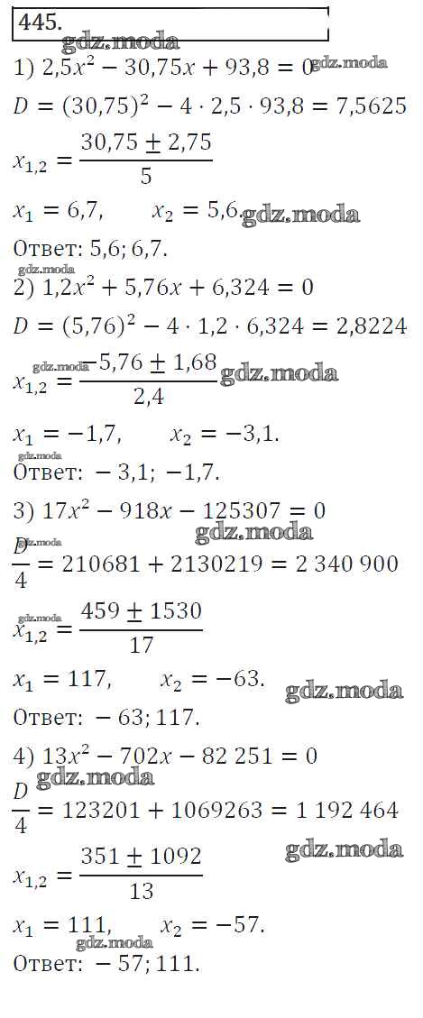 ГДЗ решение к заданию № 445 Алгебра 8 класс Колягин Ю.М. Просвещение 2013 ФГОС бесплатно на гдз.мода!