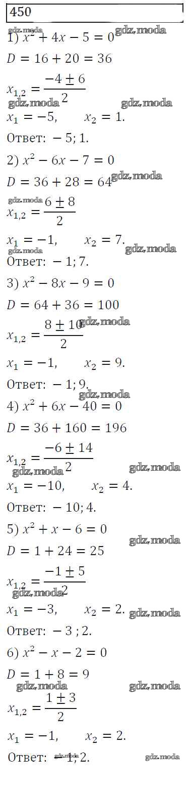 ГДЗ решение к заданию № 450 Алгебра 8 класс Колягин Ю.М. Просвещение 2013 ФГОС бесплатно на гдз.мода!
