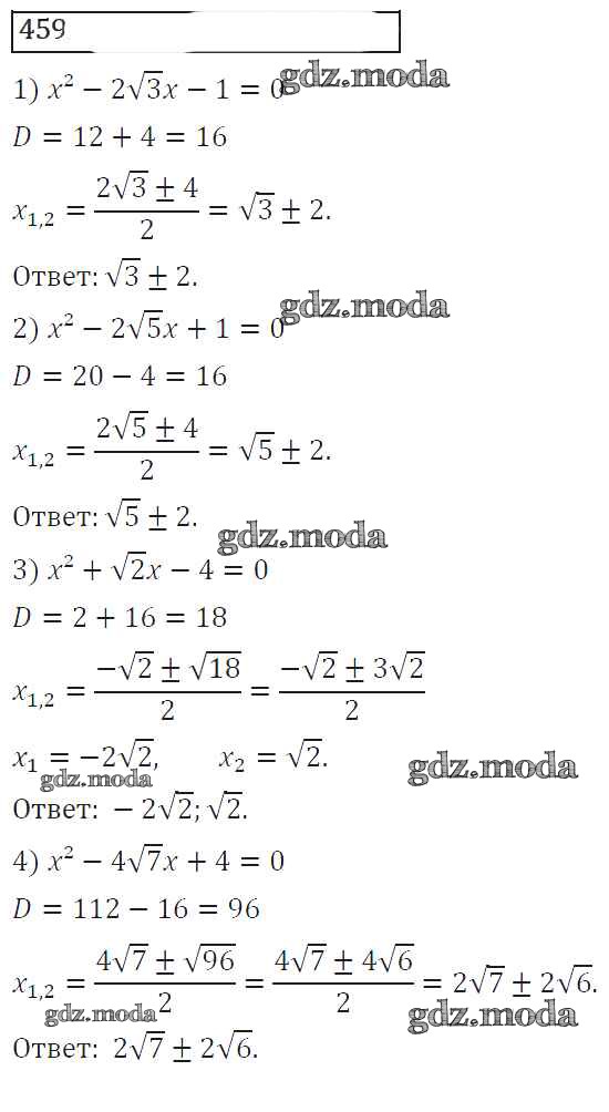 ГДЗ решение к заданию № 459 Алгебра 8 класс Колягин Ю.М. Просвещение 2013 ФГОС бесплатно на гдз.мода!
