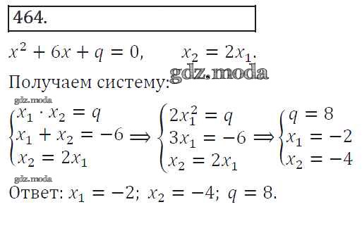ОТВЕТ на задание № 464 Учебник по Алгебре 8 класс Колягин УМК