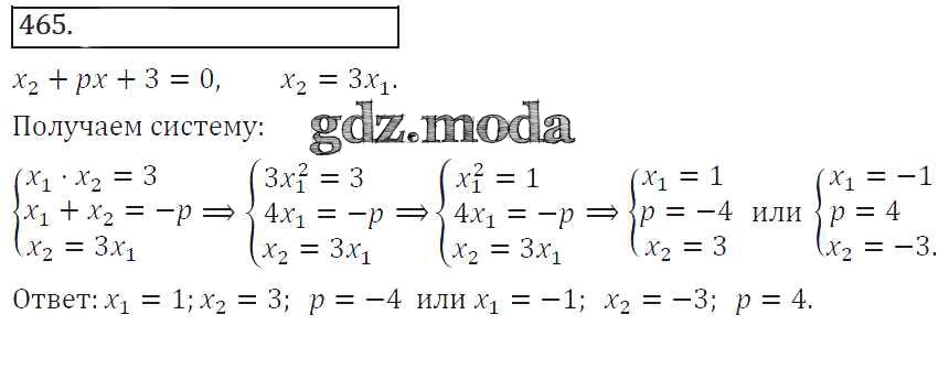 ОТВЕТ на задание № 465 Учебник по Алгебре 8 класс Колягин УМК