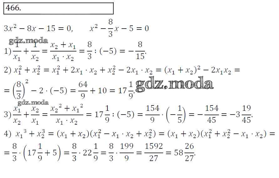 ГДЗ решение к заданию № 466 Алгебра 8 класс Колягин Ю.М. Просвещение 2013 ФГОС бесплатно на гдз.мода!
