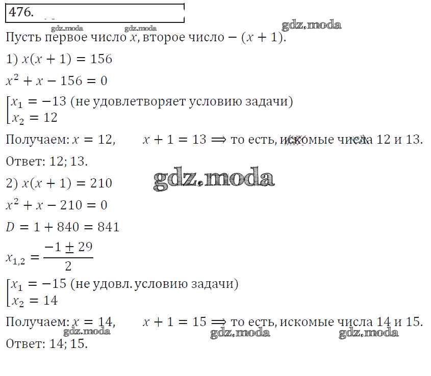 ГДЗ решение к заданию № 476 Алгебра 8 класс Колягин Ю.М. Просвещение 2013 ФГОС бесплатно на гдз.мода!