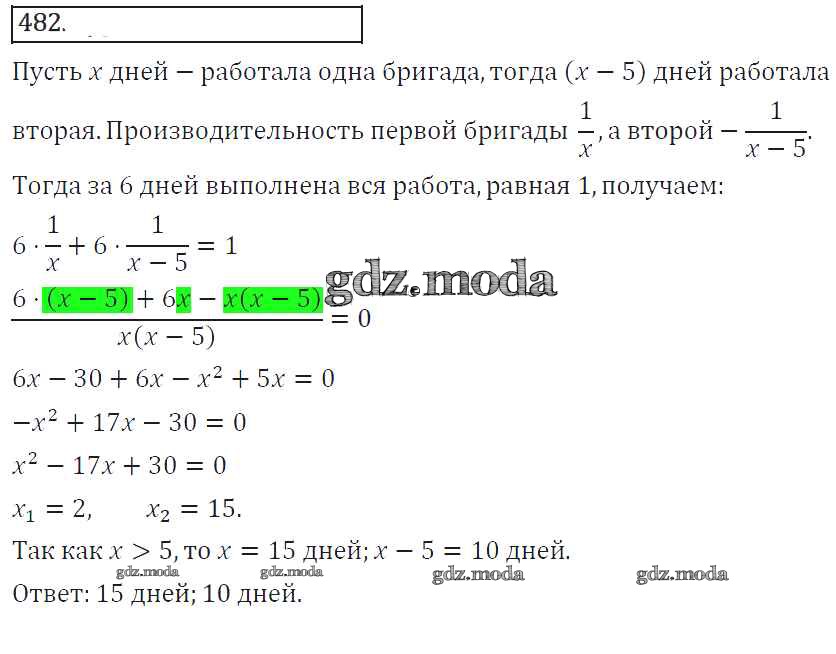 ГДЗ решение к заданию № 482 Алгебра 8 класс Колягин Ю.М. Просвещение 2013 ФГОС бесплатно на гдз.мода!