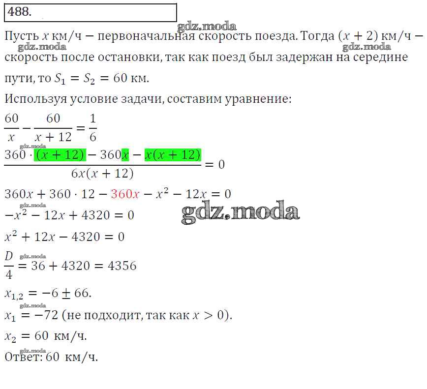 ГДЗ решение к заданию № 488 Алгебра 8 класс Колягин Ю.М. Просвещение 2013 ФГОС бесплатно на гдз.мода!