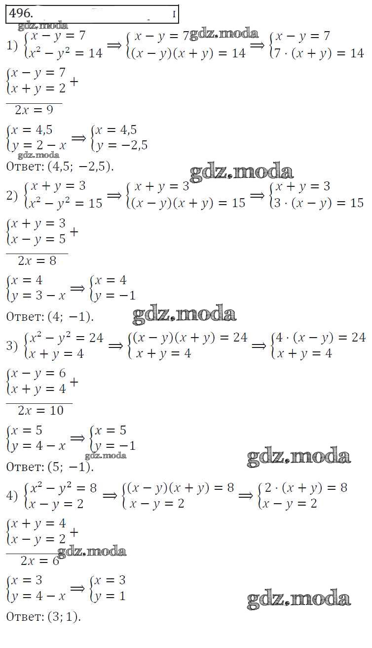 ГДЗ решение к заданию № 496 Алгебра 8 класс Колягин Ю.М. Просвещение 2013 ФГОС бесплатно на гдз.мода!