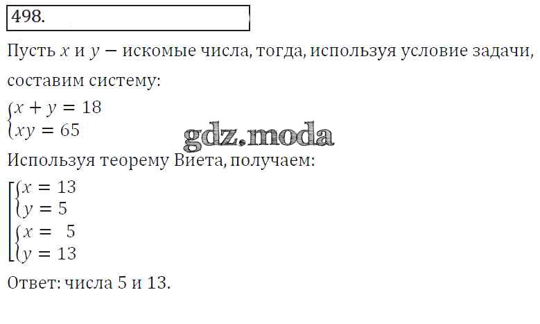 ОТВЕТ на задание № 498 Учебник по Алгебре 8 класс Колягин УМК
