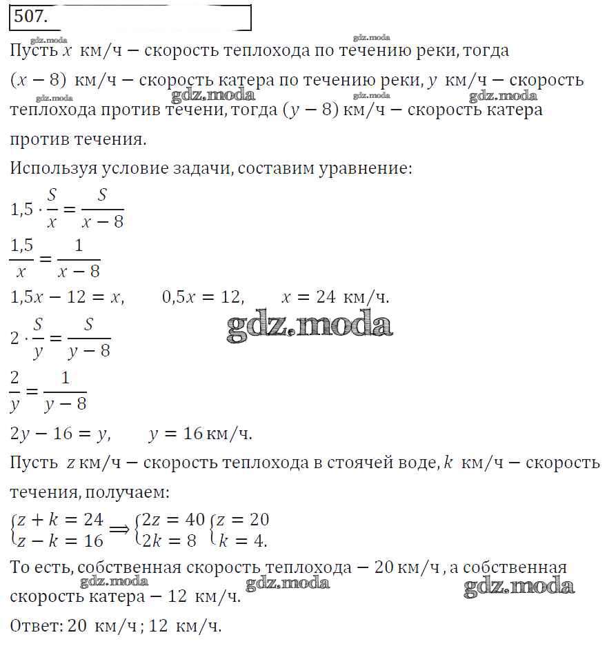 ОТВЕТ на задание № 507 Учебник по Алгебре 8 класс Колягин УМК