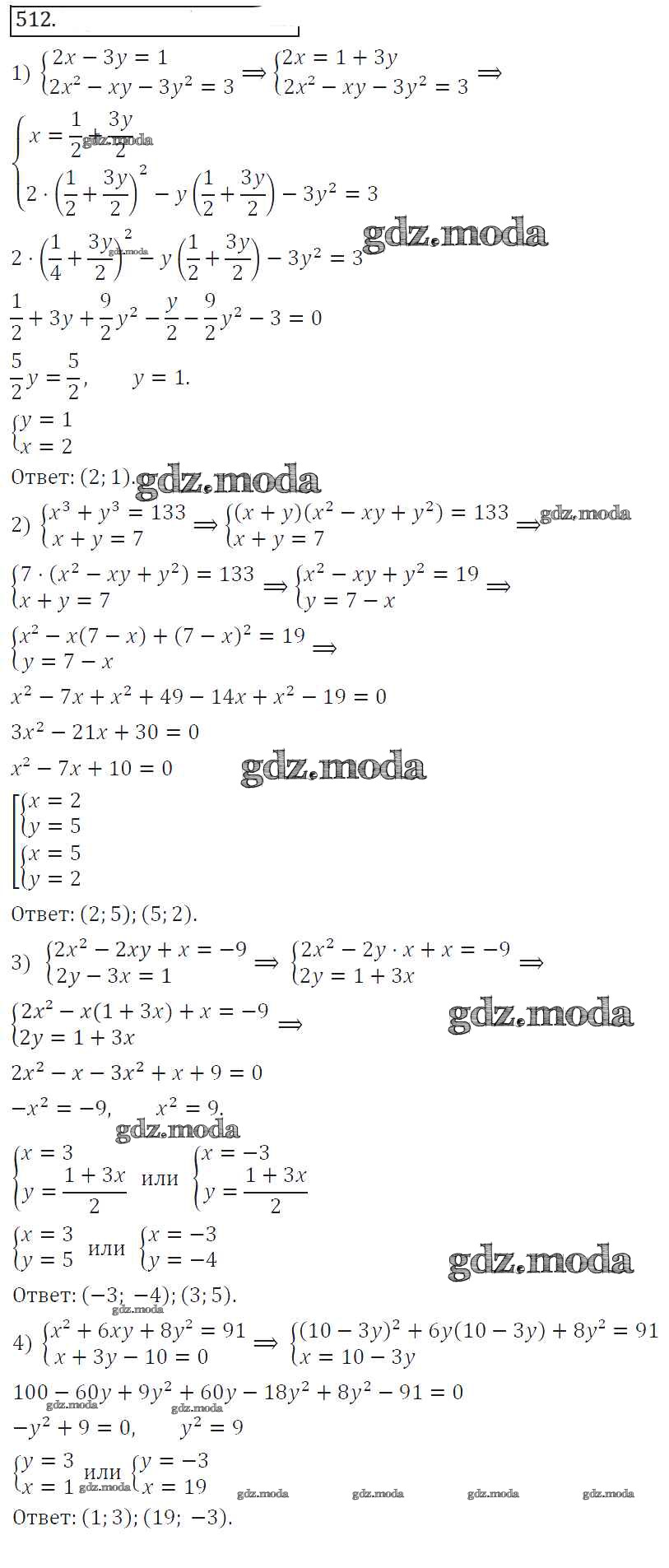 ОТВЕТ на задание № 512 Учебник по Алгебре 8 класс Колягин УМК