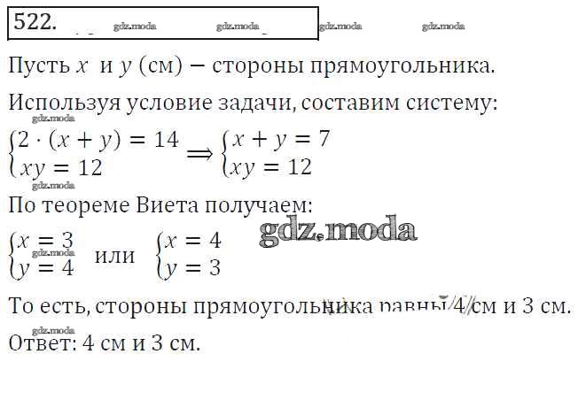 ОТВЕТ на задание № 522 Учебник по Алгебре 8 класс Колягин УМК