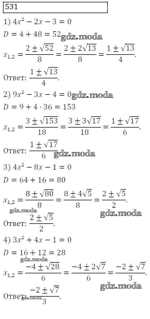 ОТВЕТ на задание № 531 Учебник по Алгебре 8 класс Колягин УМК