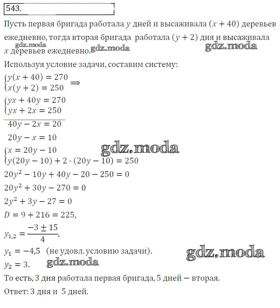 ГДЗ решение к заданию № 543 Алгебра 8 класс Колягин Ю.М. Просвещение 2013 ФГОС бесплатно на гдз.мода!