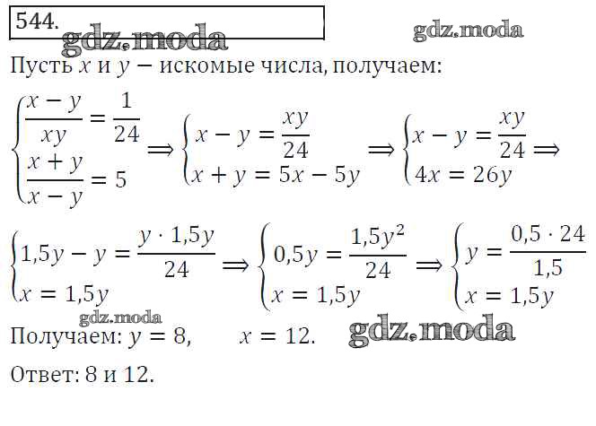 ОТВЕТ на задание № 544 Учебник по Алгебре 8 класс Колягин УМК